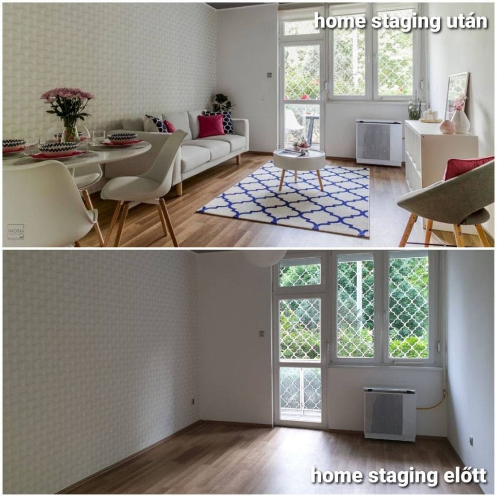 A lakást a tulajdonosa befektetési célból vásárolta és felújítás után üresen kezdte el árulni. Az ingatlan hónapokig nem kelt el, a tulajdonos ajánlatot sem kapott. A bérelt bútorokkal és dekorációval történt home staging után pár napon belül 2 ajánlat is érkezett, végül a vevő, – aki alku nélkül vásárolta meg a lakást – egy olyan korábbi érdeklődő volt, aki üresen túl komornak találta az ingatlant.