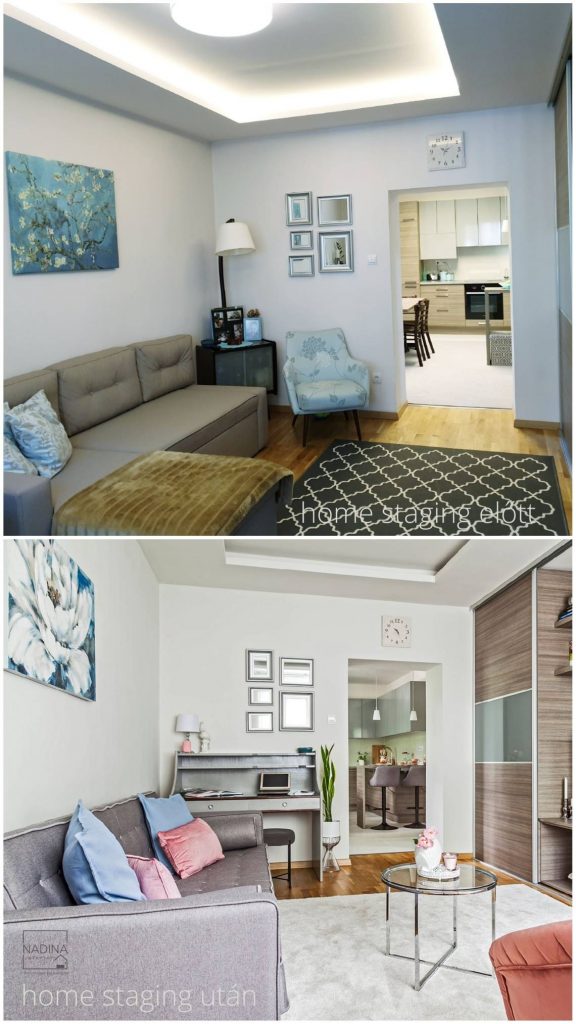 Az ingatlan pár éve teljeskörű felújításon esett át, nagyon jó állapotban volt, egy tisztasági festés után került sor a home staging szerinti felkészítésre, melynek során a célcsoport igényeit figyelembe véve világosabb és élénkebb színeket csempésztem a lakásba, valamint a térérzet növelése érdekében pár bútordarab is lecserélésre került.